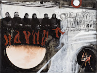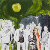 Egy-két ilyen festményt készítettem évente, nem sokat és az volt a jellemző, hogy valami belső feszültség szülte őket. Úgy mint a "Jelenkor"-nál, dilemmázom ma is ezeken a képeimen. Párszor koponyákat festettem, hogy az élet múlandósága körül forgó gondolataimat kifejezzem, de aztán rá se bírtam nézni az ilyen képekre, és felmerült, hogy:- minek festettem meg? Nem éri el a célt, ettől senki nem fog részesülni abban a felismerésben amit én magamba forgatok, csak látnak egy ijesztő valamit. Arra jutottam, hogy meg kell találnom a kognitív-disszonanciáim, álmaim és felismeréseim jobb és jobb kifejezési formáit. Direkt kitűztem, hogy nem szerepelhetnek nyomasztó elemek a képen, azok nélkül kell tudnom megfogalmazni a lényeget. A"Barátság, nappal és éjszaka az Égbolt kertjében" vagy itt lejjebb az első, az "Isten országa Blaha Lujza tér " ilyen képek, amiben sikerült a tartalmat a formával összehoznom és szeretem, elfogad a végeredményt.