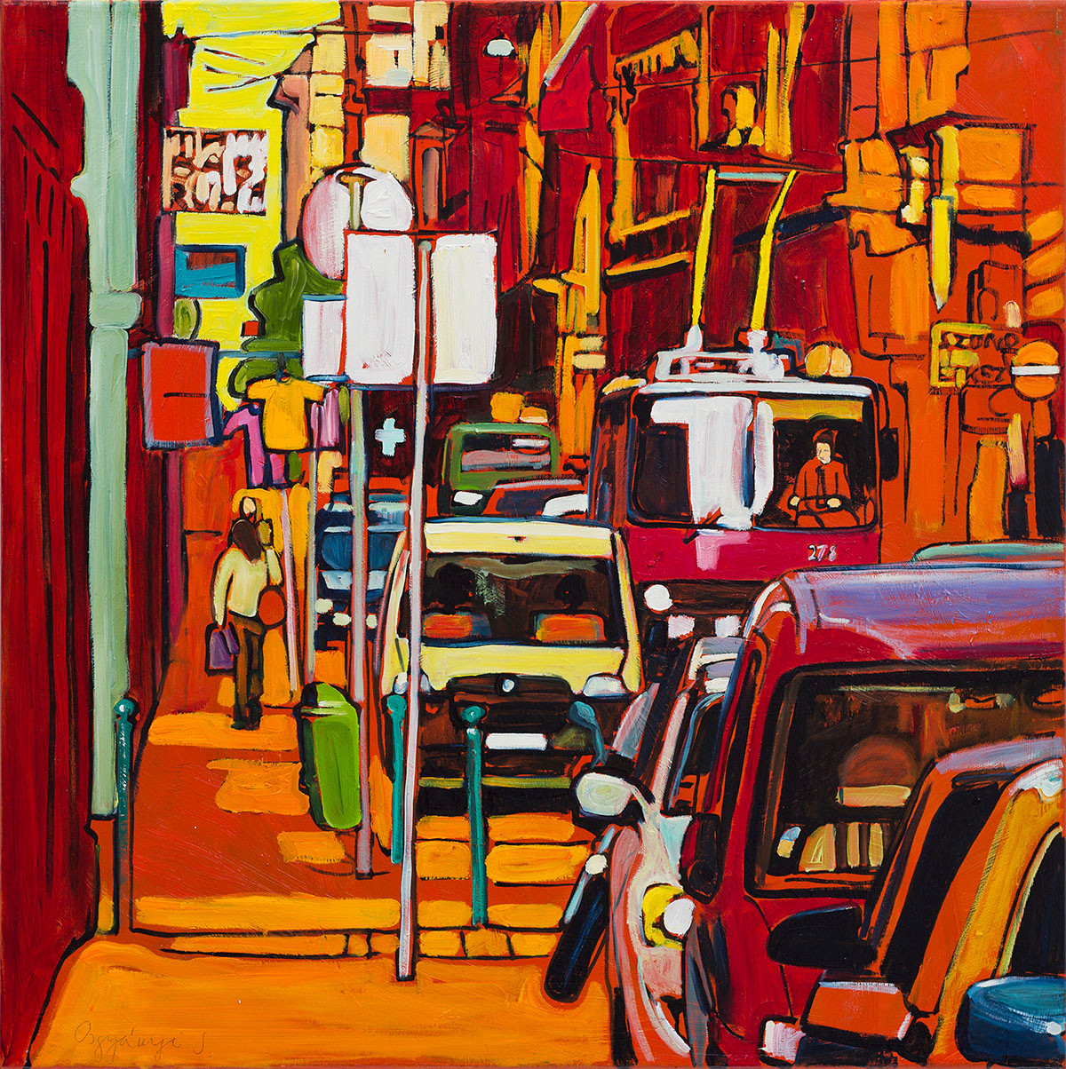 73-as troli a Szondi utcában 2012 olaj-vászon 80x80